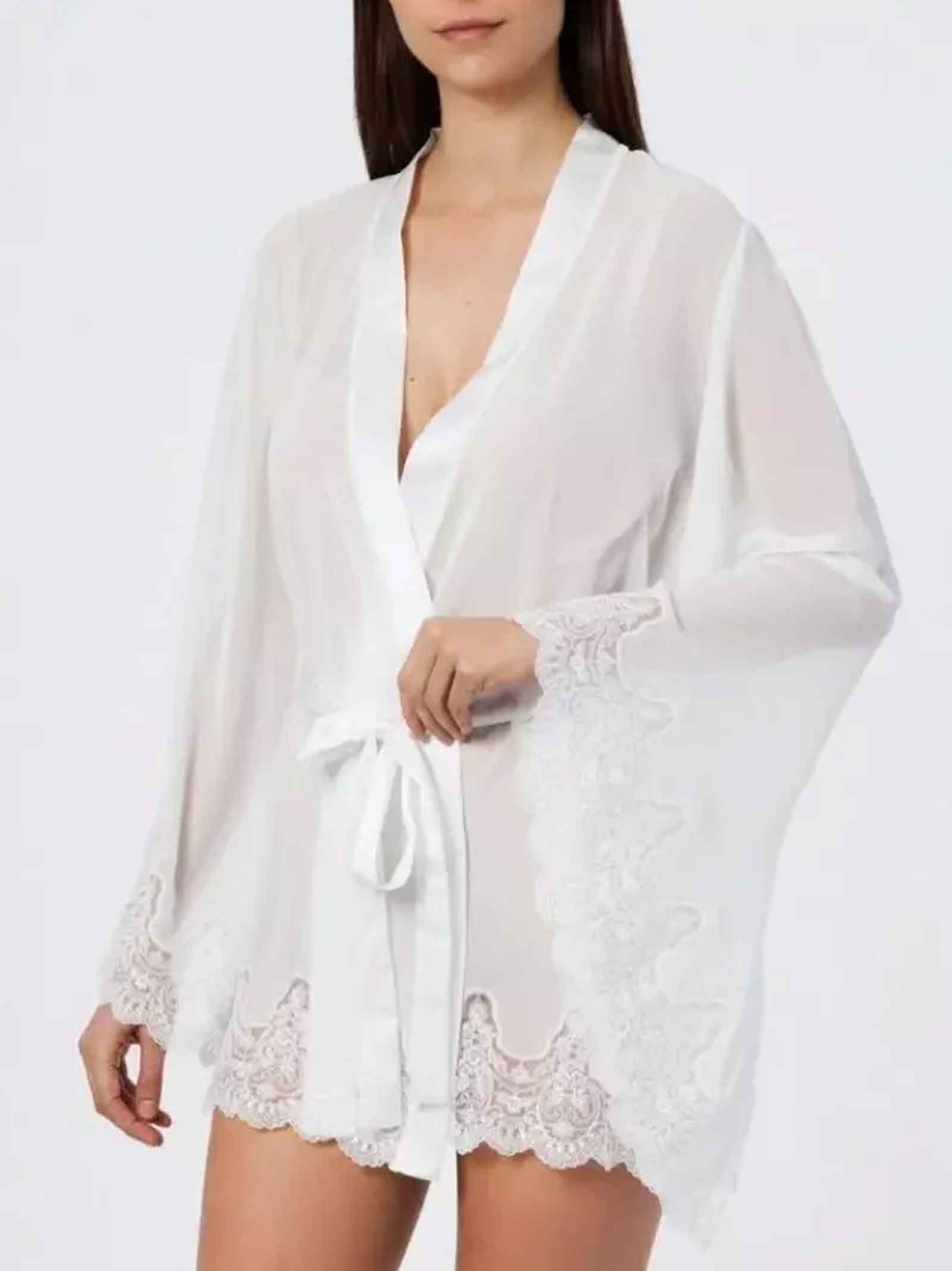 Su diseño incluye detalles refinados en mangas y cinturón, que aportan un estilo distinguido y atemporal. Ideal para novias, ocasiones especiales o simplemente para disfrutar de la lencería de lujo en casa.