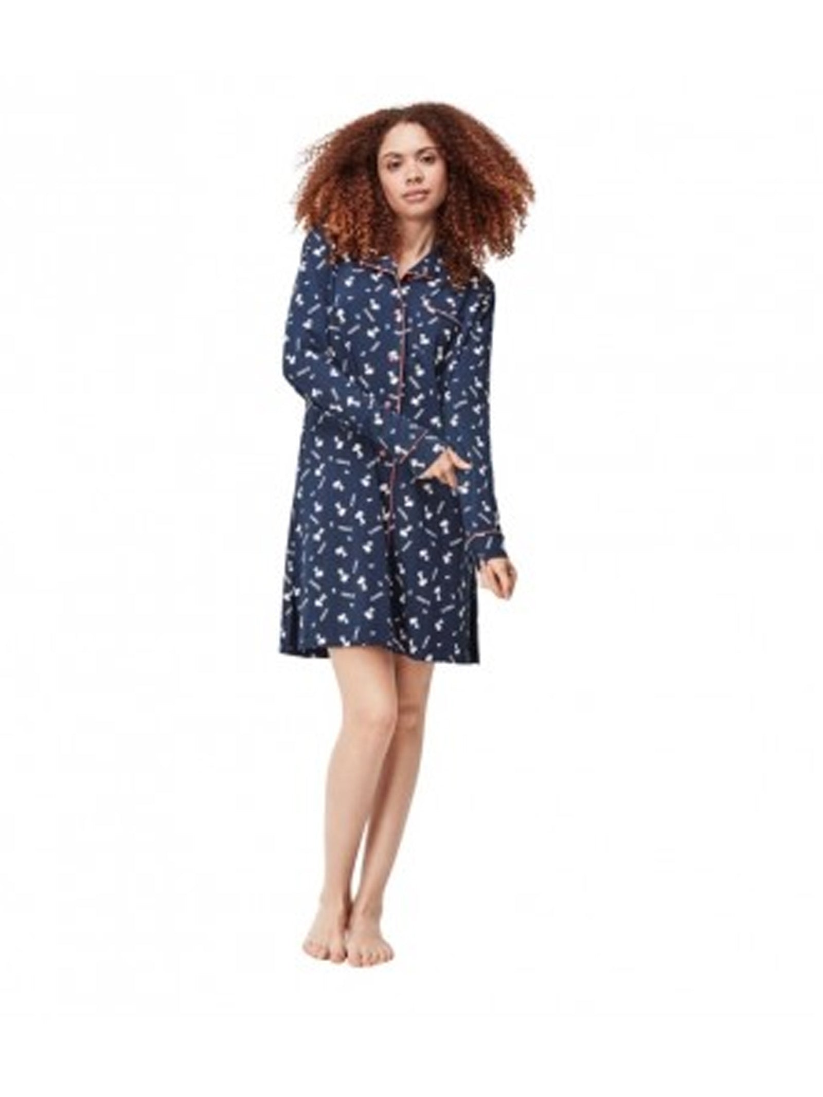 Camisón de corte camisero abierto y con botones, con cuello, lleva los vivos y botones a contraste. En un agradable punto de algodón todo estampado snoopys.
