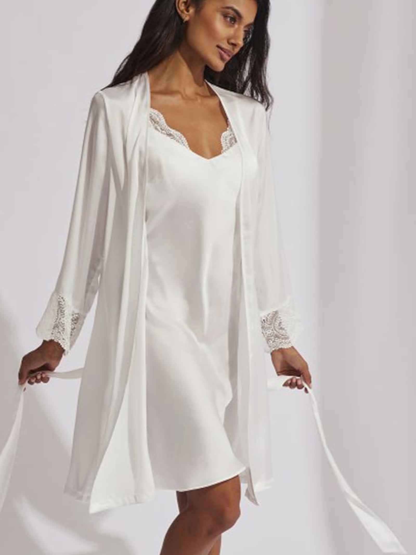 La Bata Matilda de Selmark es la prenda perfecta para acompañarte en los momentos más especiales de tu preparación como novia. Confeccionada en un raso suave y fluido, aporta un brillo delicado y un tacto sedoso que envuelve la piel con una sensación de lujo y ligereza.