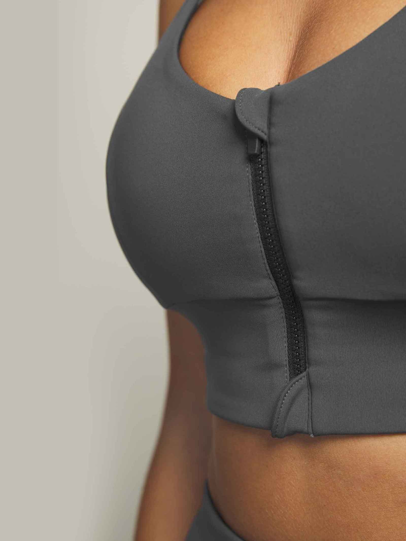 Top deportivo con cremallera recubierta para evitar el contacto con la piel de la colección Selmark Tech by Pilar Rubio. Cuenta con tul de control, goma interior para un máximo soporte, copas extraíbles y transfer reflectante. Ideal para mantener el pecho recogido y firme garantizando libertad de movimiento durante la actividad física.